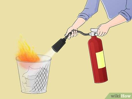 7 记住“一拉、二瞄、三压、四扫”的口诀,能帮助你有效运用灭火器。 从手柄拉开保险销(位于灭火器顶部), 迅速握住瓶把及橡胶软管。此举能打开闭锁机制,让你喷射。 把灭火器喷嘴或软管对准火焰根部。如之前所解释,对准火焰根部让你扑灭火源或燃料。身体可俯下来。 慢慢压下手柄或压把喷射灭火成分。放开手柄会终止喷射,所以要一直把它压下。 向周围约15厘米范围内扫射,直到耗尽灭火材料。扫射动作有助于灭火。站在距离大火数米远的地方。灭火器本来就是发明在一段距离外使用。 刚开始喷射时火势可能稍微变大,因为喷射的灭火成分和推进时的风时火焰被推离源头(你真正的目标)。切勿惊恐,因为它会迅速变小。